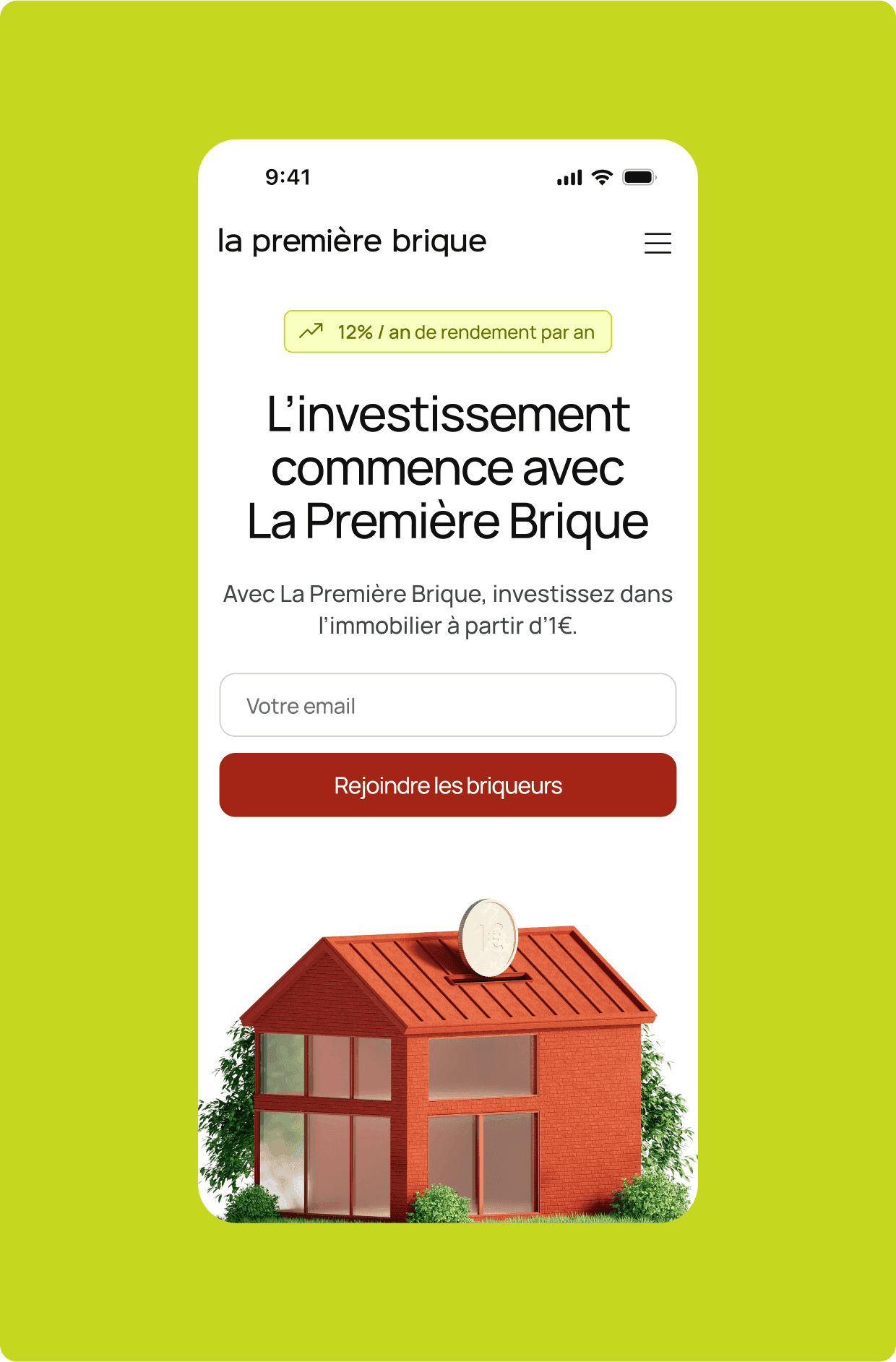 La Première Brique rend l’investissement immobilier accessible à tous dès 1 €. Mais leur première identité, très communautaire et décalée, ne reflétait pas leur ambition : devenir un acteur crédible de la tech et de la finance, tout en restant proche et pédagogique.