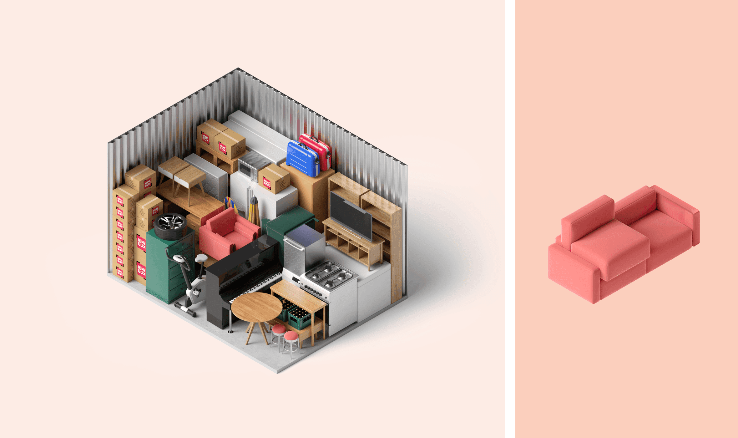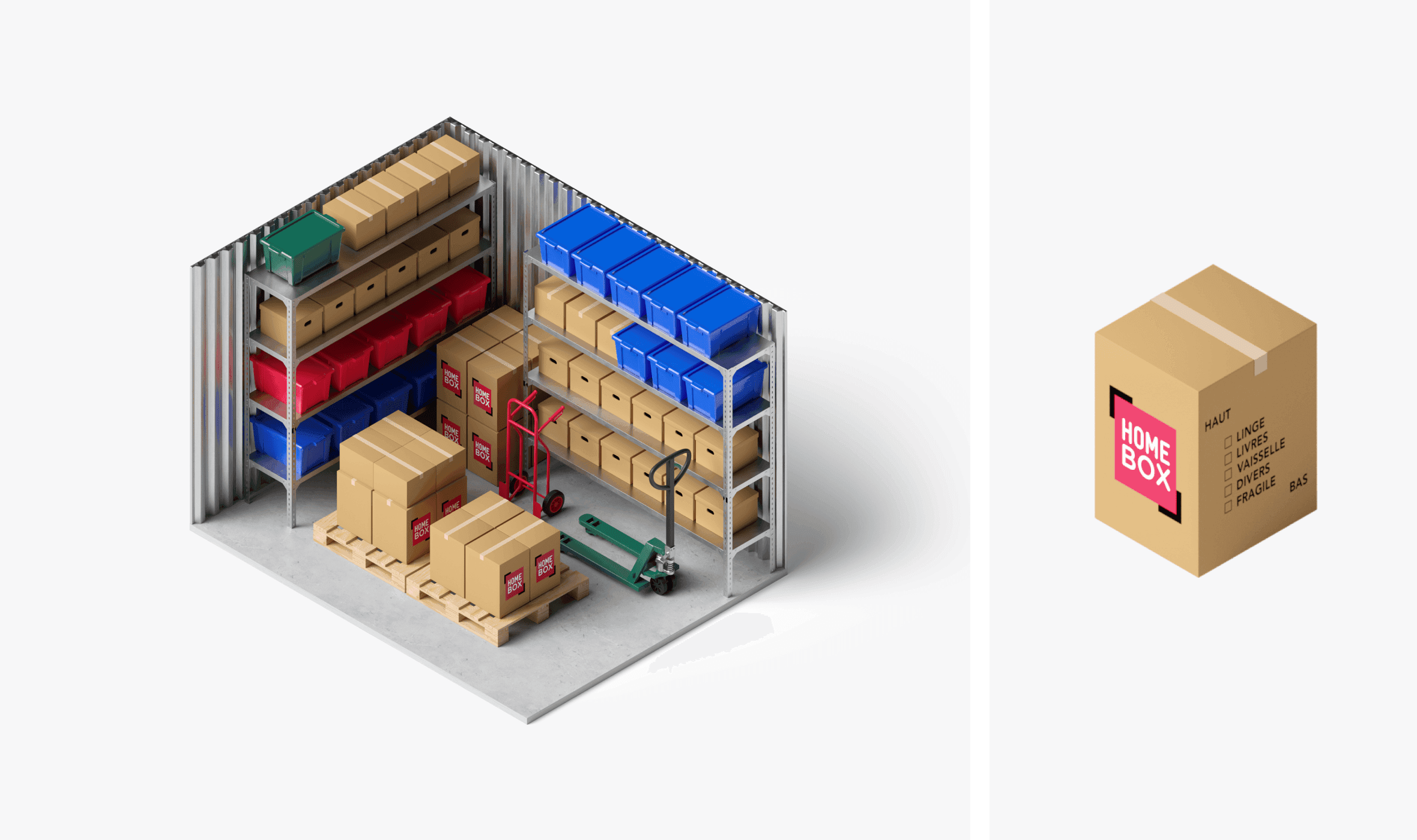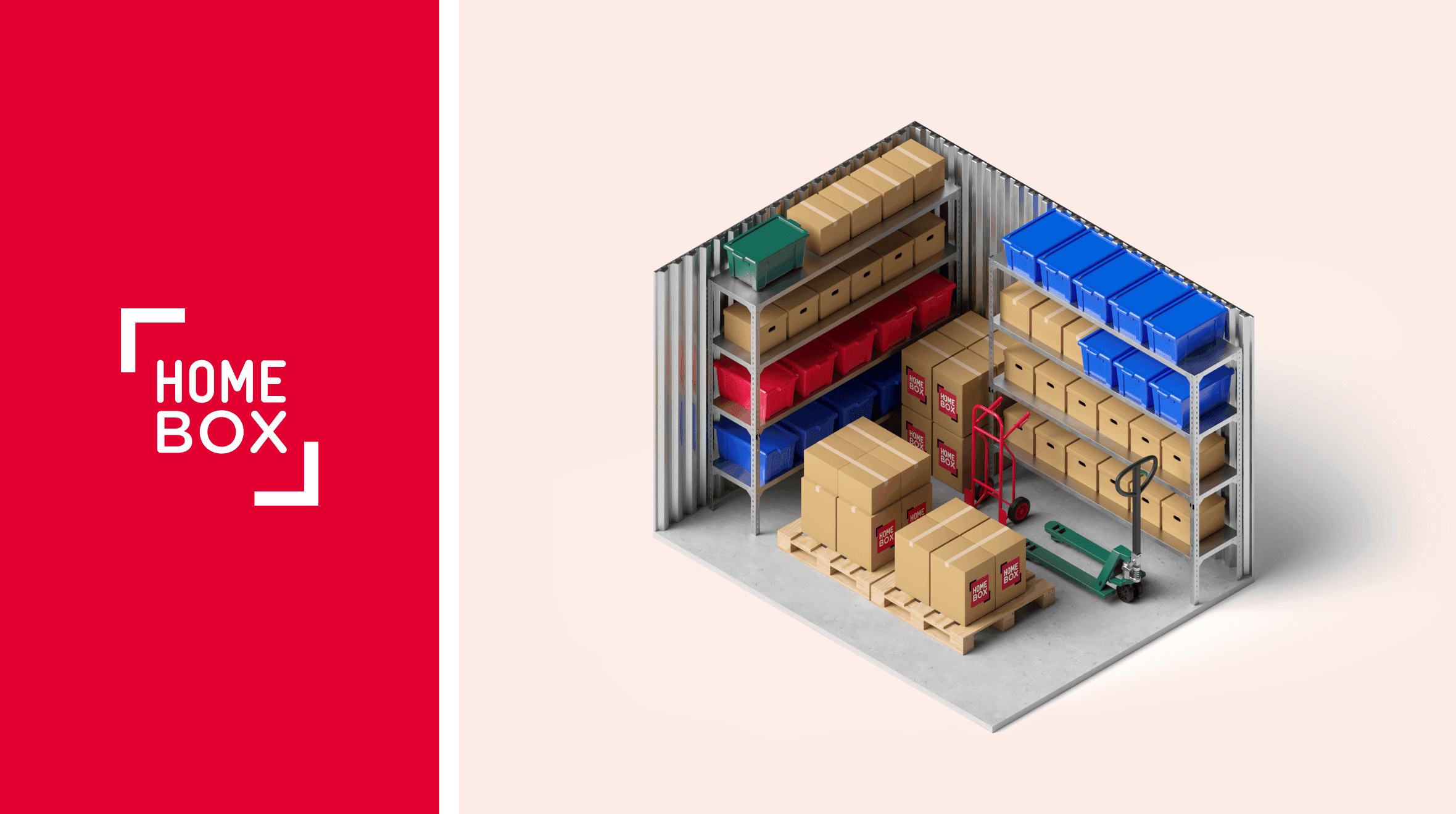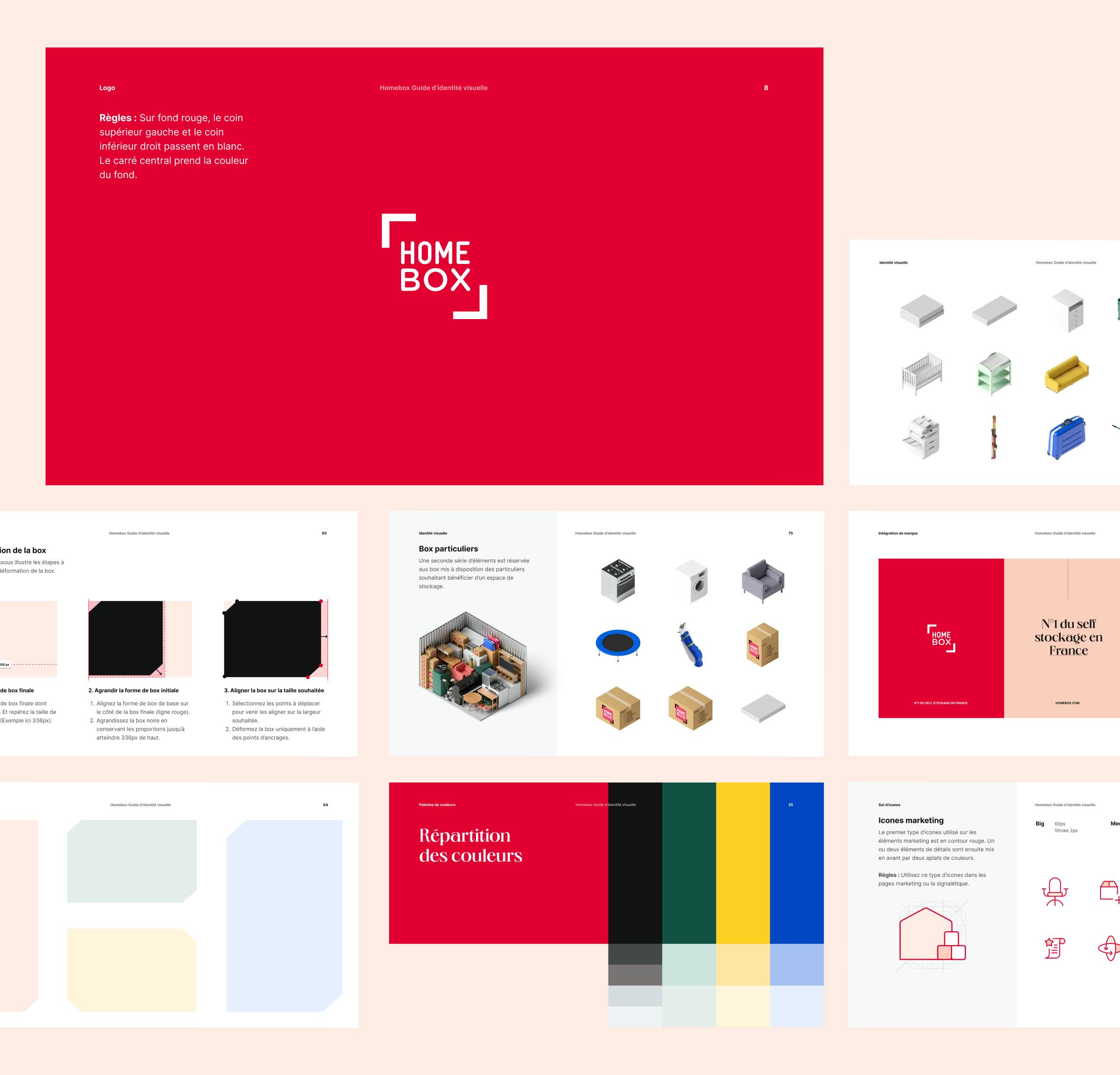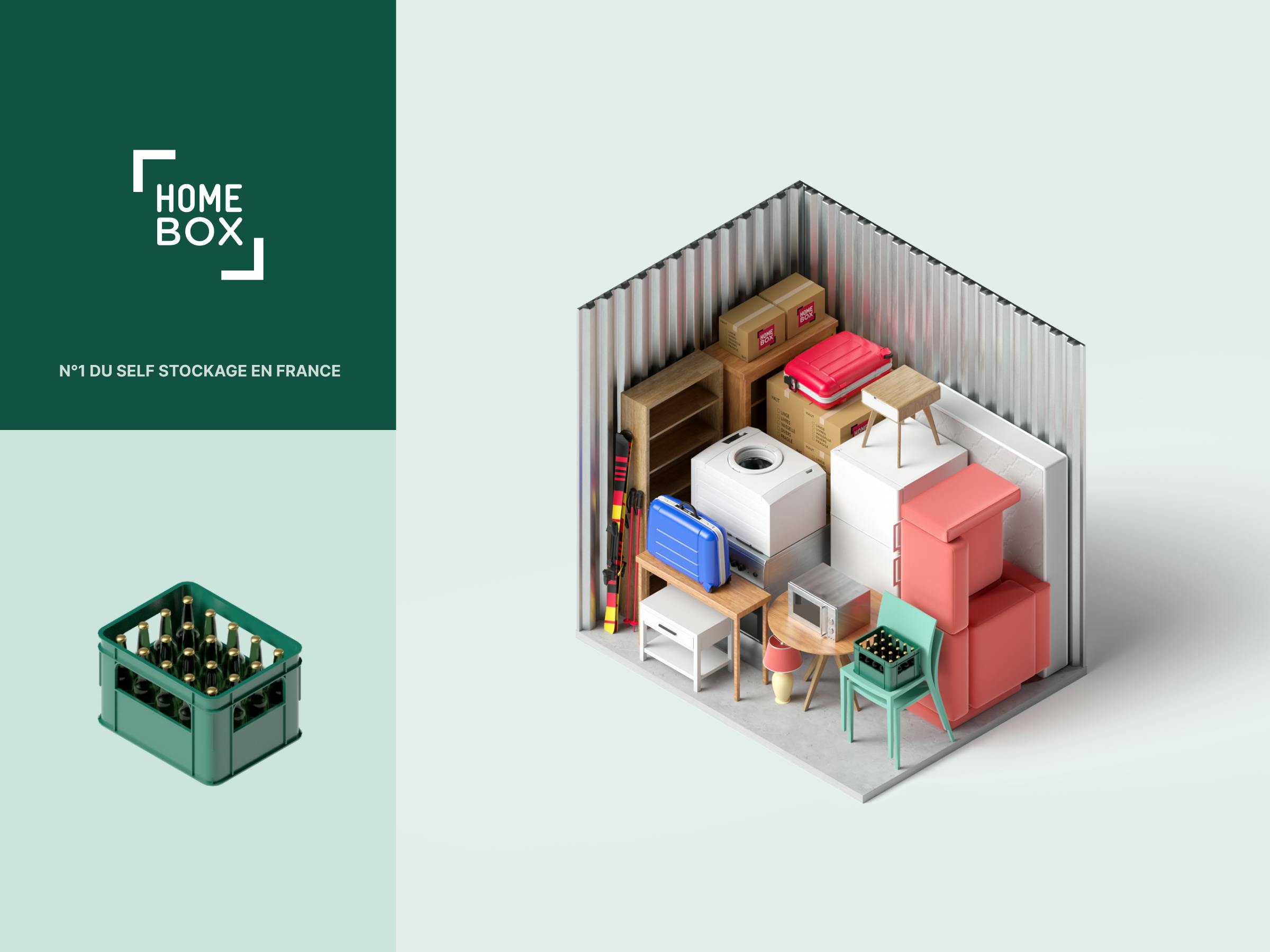 Homebox, the European leader in self-storage for private individuals, called on our agency to modernize its visual identity while respecting its DNA. While retaining the emblematic red and the historic logo, we enriched the brand with a secondary palette and introduced a perspective motif, evoking storage boxes. This graphic framework, designed for solid colors or immersive visuals, modernizes Homebox's image while remaining familiar. To enhance the user experience, we integrated 3D illustrations of the furniture and designed a website and mobile application with a clear, fluid interface. All visual codes were consigned to a comprehensive brandbook, ensuring perfect consistency across all digital and physical media. With this design, we were able to energize a brand while preserving its heritage. By breathing new life into Homebox in a more contemporary way, the company has strengthened its leadership position by emphasizing its commitments to simplicity, security and accessibility.