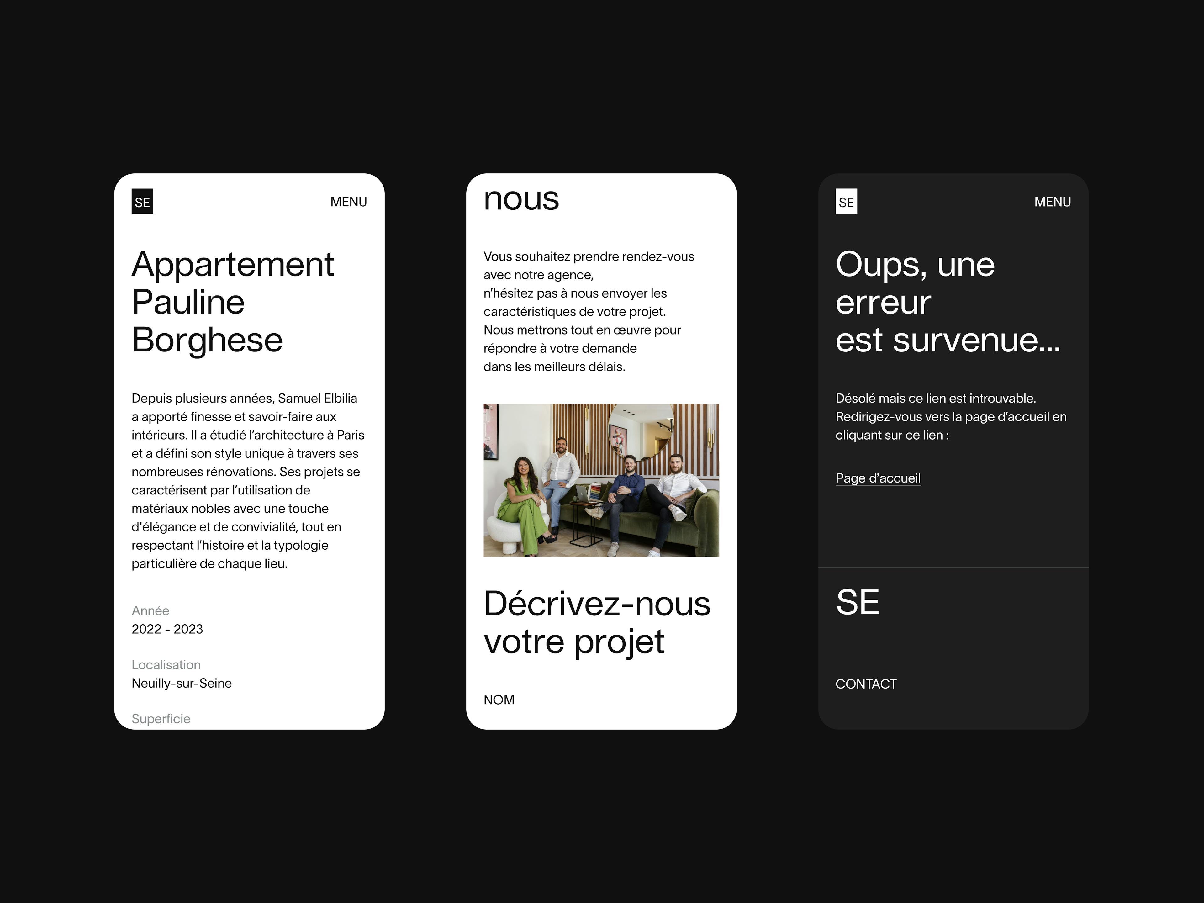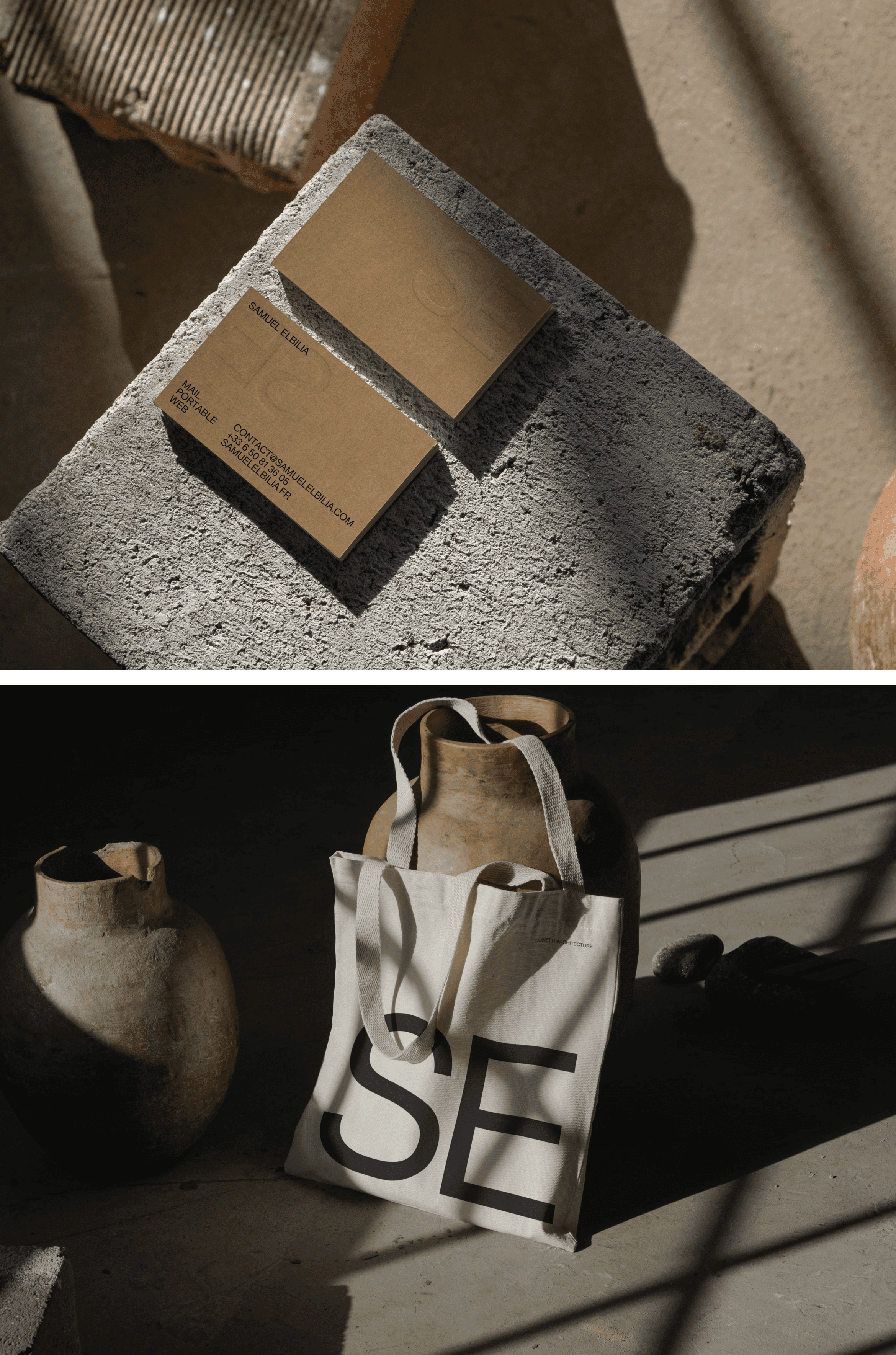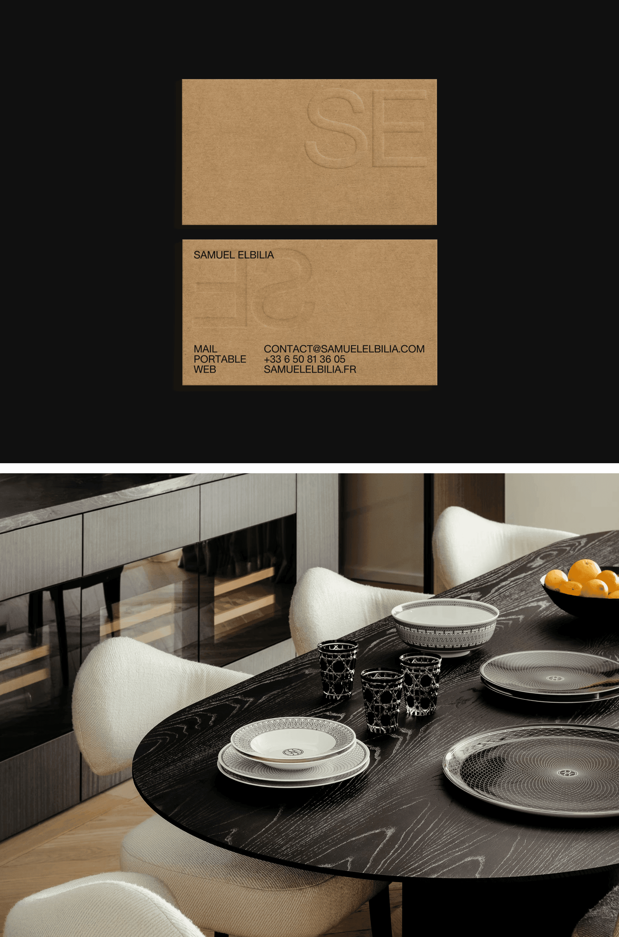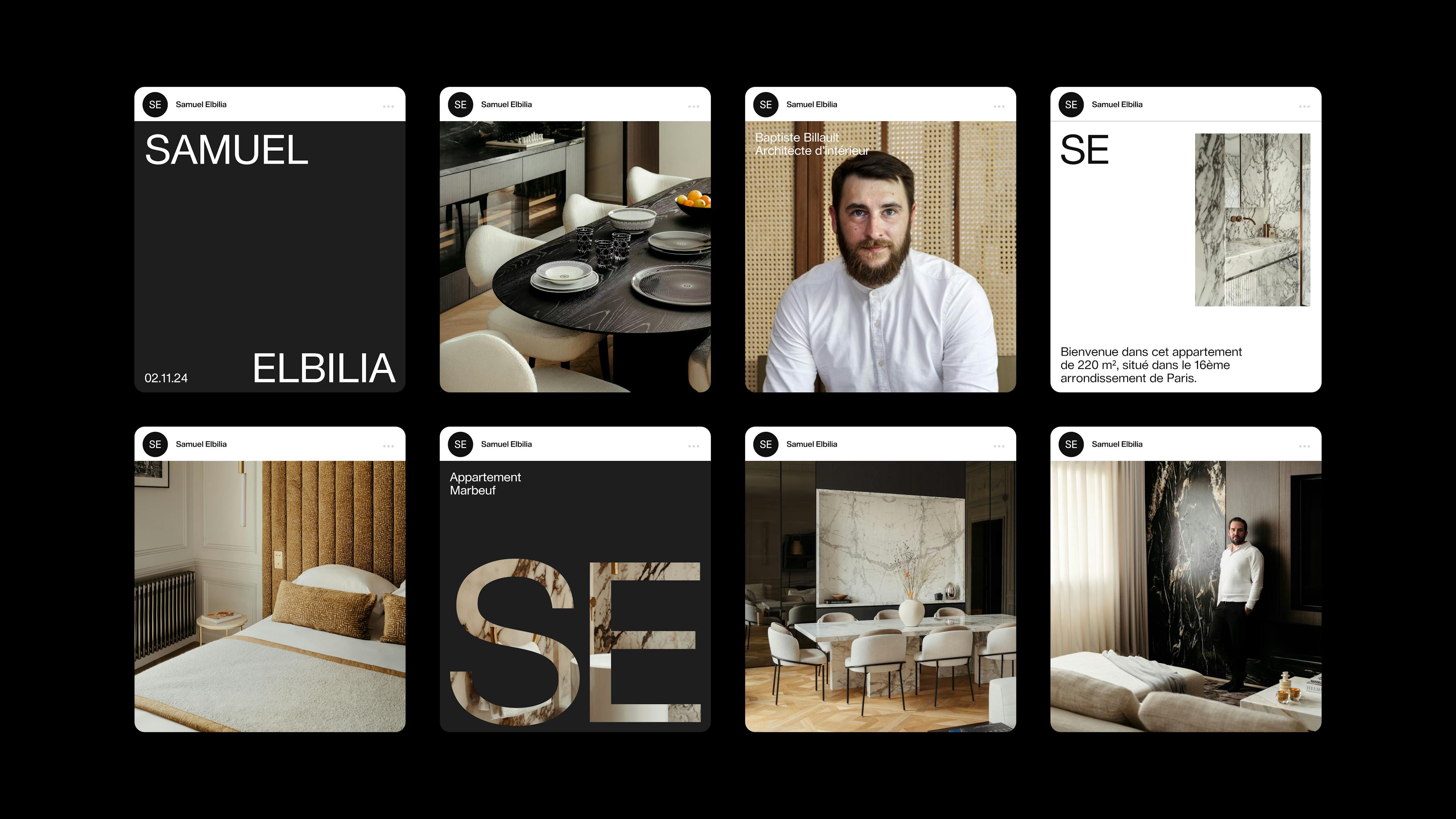 For over 10 years, Samuel Elbilia has been crafting spaces that align with the lifestyles of their occupants, with a refined style that combines expertise and the nobility of materials. His firm approached Bruno to translate a vision we share: design that is beautiful, functional, vibrant, and meaningful. To reflect this approach, we drew inspiration from Swiss design. We envisioned a play of textures reminiscent of the architect’s material choices, such as cardboard or textured paper. The Lausanne typography, with its almost mathematical grid, and a timeless palette warmed by organic tones, express the balance and sophistication of this graphic identity. The website extends this philosophy. Stripped of the unnecessary, it prioritizes fluidity and immersion with soft animations and horizontal scrolling. The entire design reflects the essence of Samuel’s work: a perfect symbiosis of aesthetics and utility.