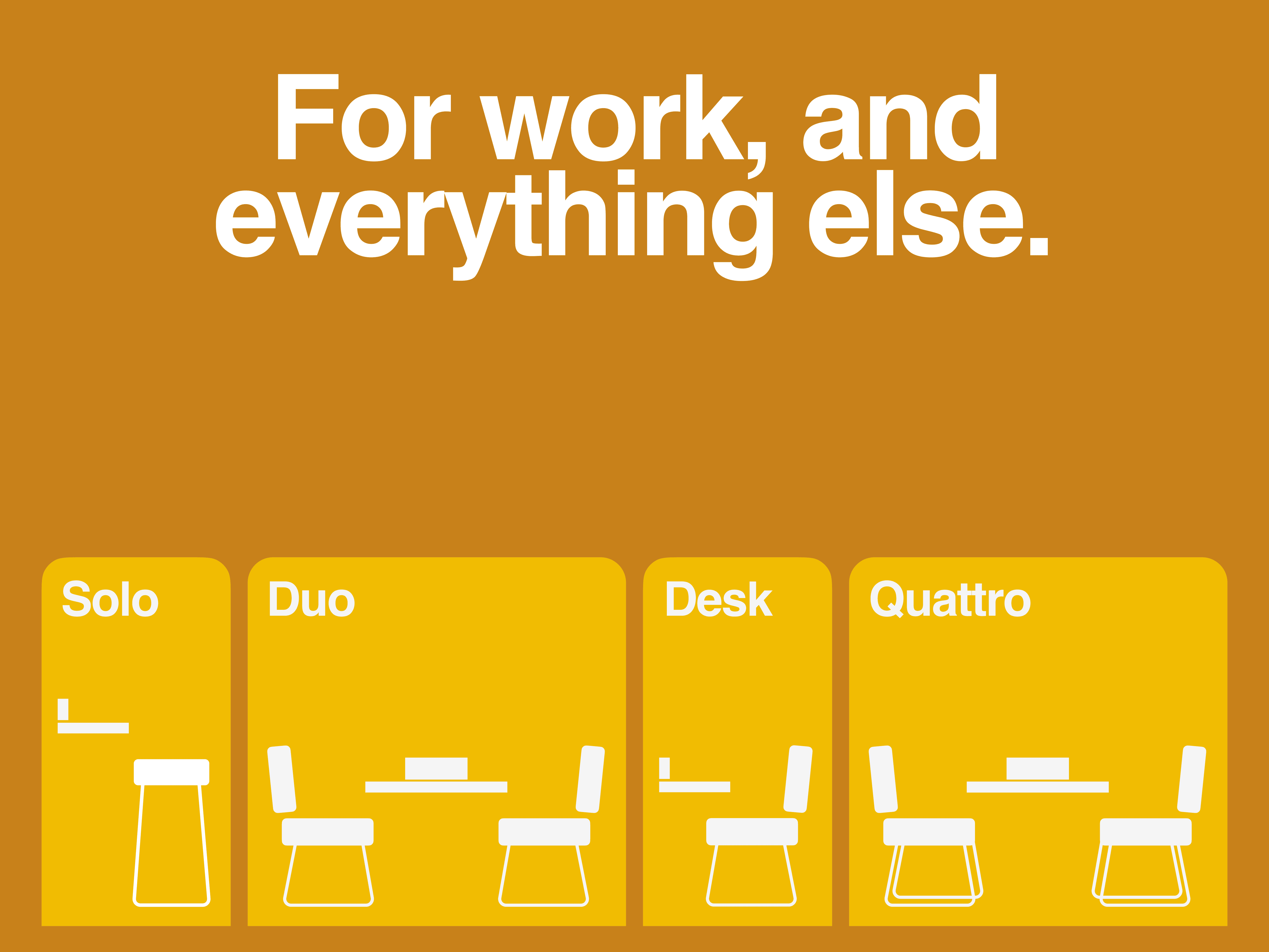 To elevate the brand to the level of this promise, we anchored it in furniture culture. Work With Island should be the one that dresses the new standard for workspaces. Simple. Modern. Universal.