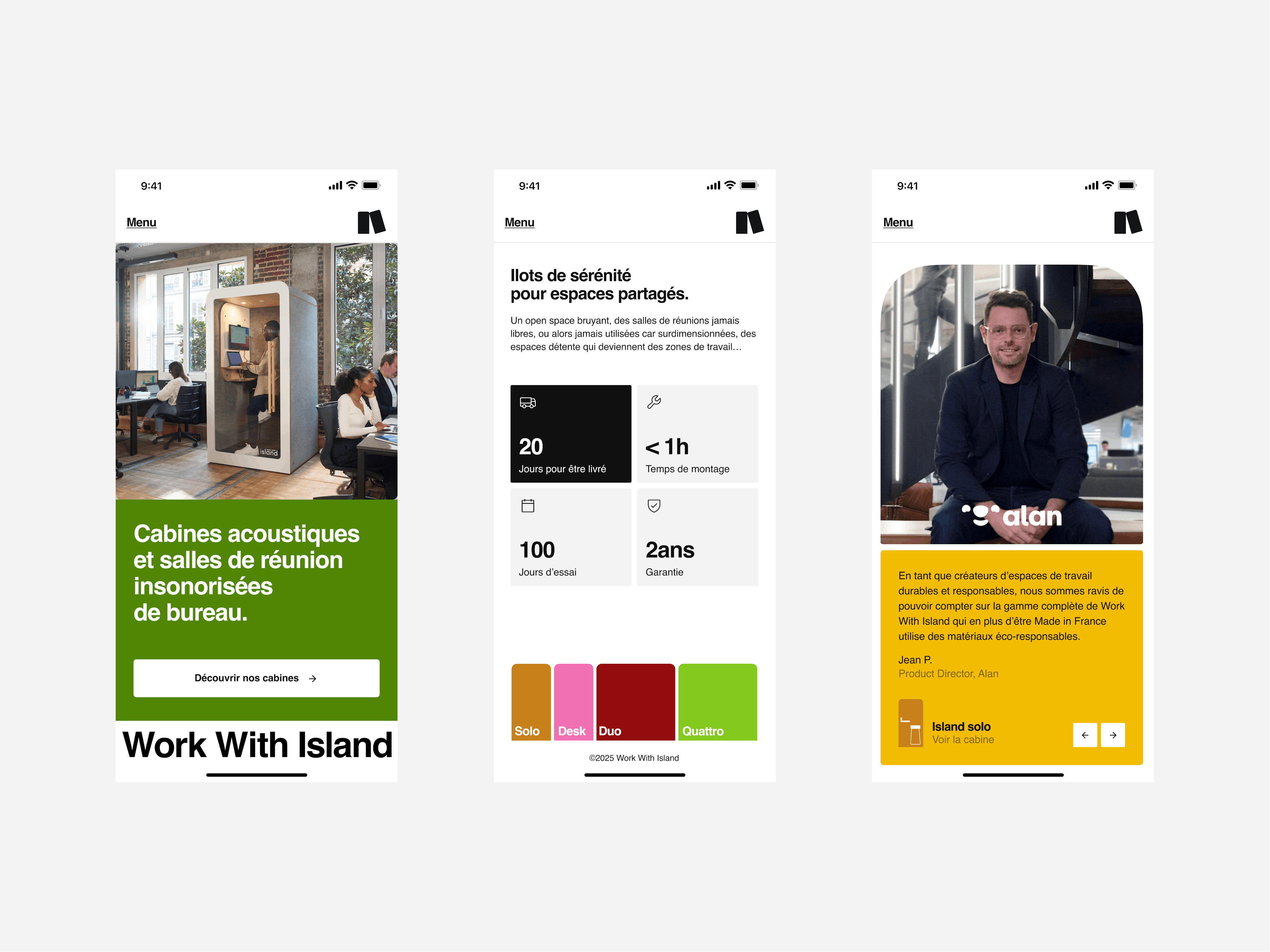 Pour hisser la marque à la hauteur de cette promesse, nous l’avons ramené à une culture du mobilier. Work With Island doit être celle qui habille le nouveau standard des espaces professionnels. Simple. Moderne. Universelle.